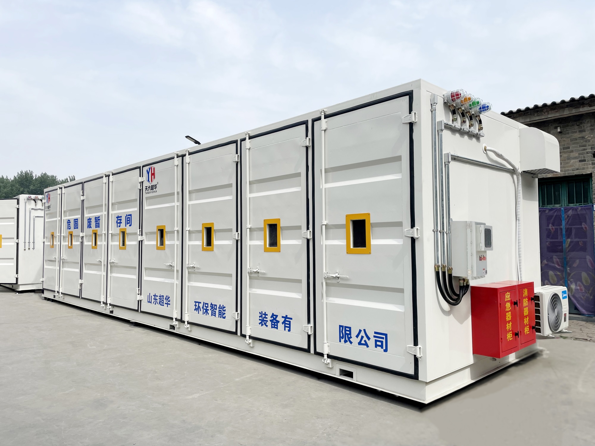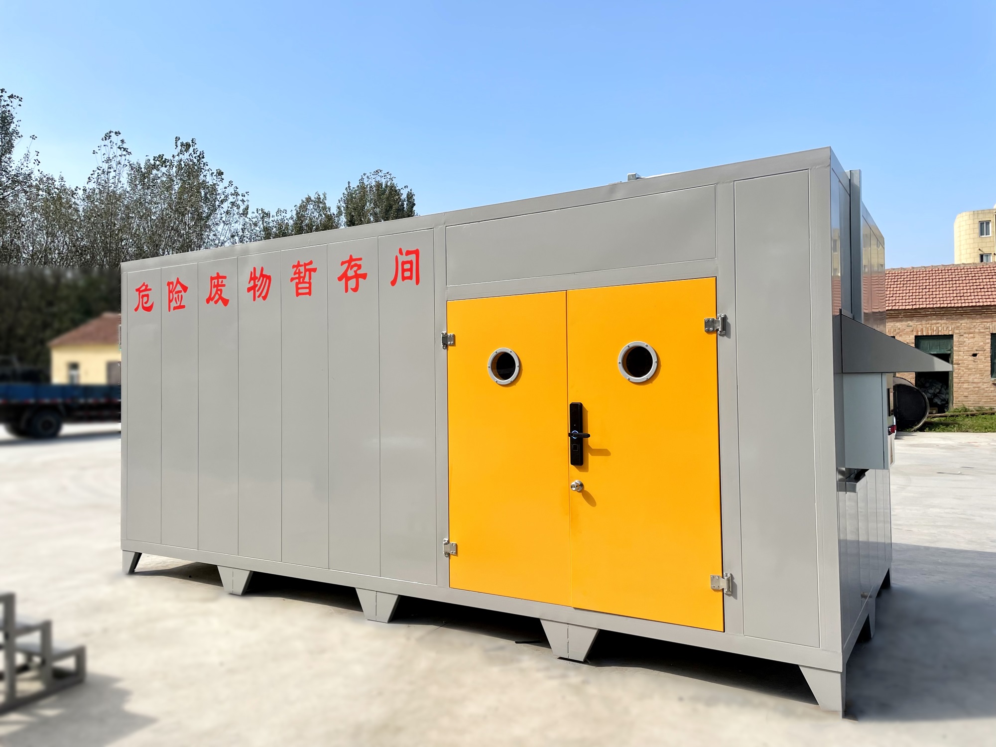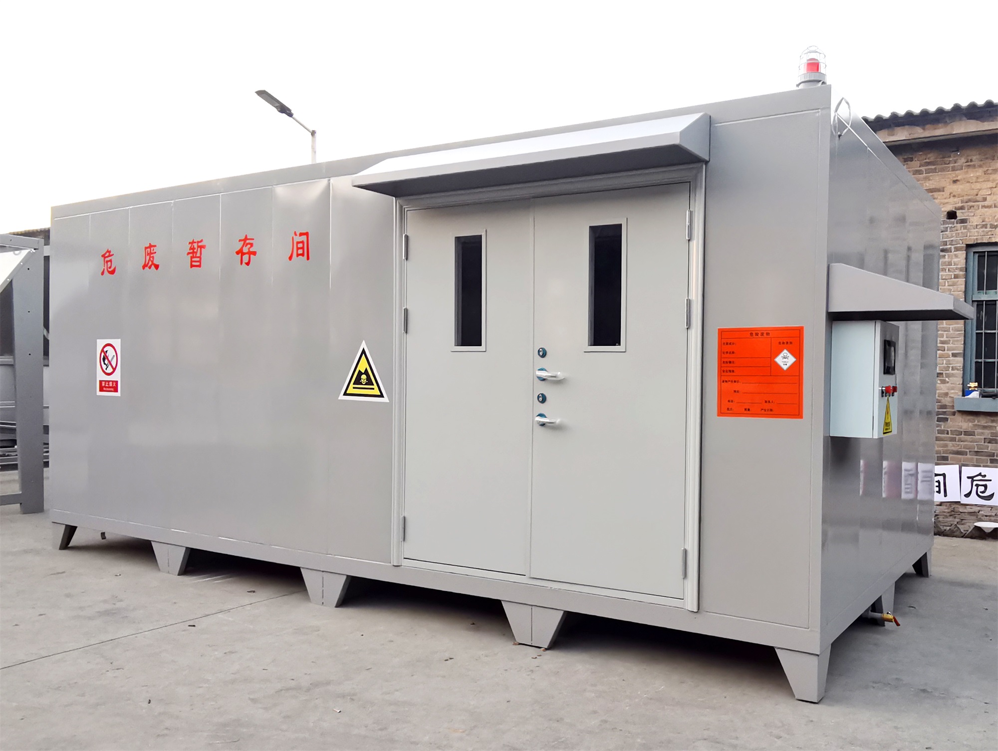 ?。?)不相容的危險廢物必/須分開存放,并設有隔離間隔斷。目前,工業(yè)企業(yè)大部分都還是使用企業(yè)內(nèi)部的普通房間(或是車間內(nèi)隔開的區(qū)域)來作為危廢暫存場地,場地基本無做防護處理,且大多數(shù)企業(yè)的危廢均無密封包裝,成為廠區(qū)的廢氣無組織擴散源。且企業(yè)現(xiàn)有的危廢暫存間不具備防火、防腐蝕等功能,如果稍有不慎,那些瓶裝、罐裝的易燃的氣體、液體就會發(fā)生傾倒、泄漏,易釀成泄毒、火災、爆炸等事故,后果不堪設想,因此急需設計一種專用的工業(yè)企業(yè)危險廢棄物暫貯存或暫貯存的箱式可移動危廢倉庫。